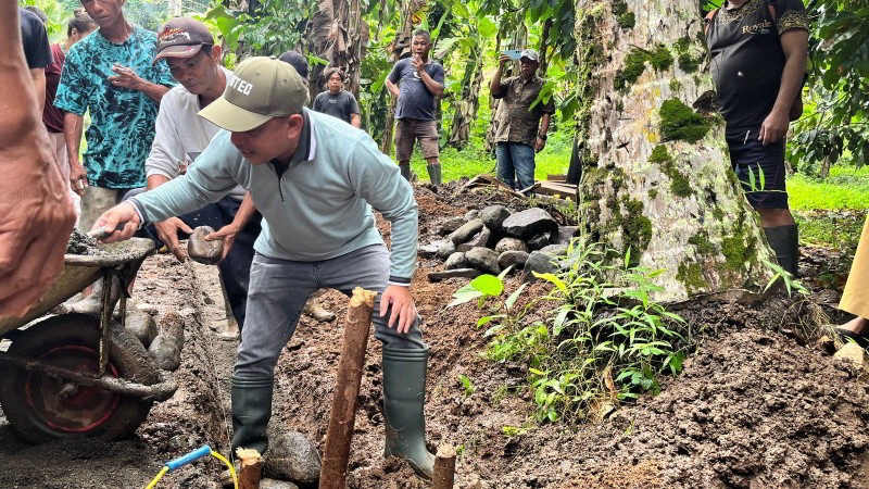 “Jalan ini sudah lama dinantikan petani. Dengan swakelola, masyarakat bisa terlibat langsung sehingga dampaknya cepat dirasakan,” jelasnya.