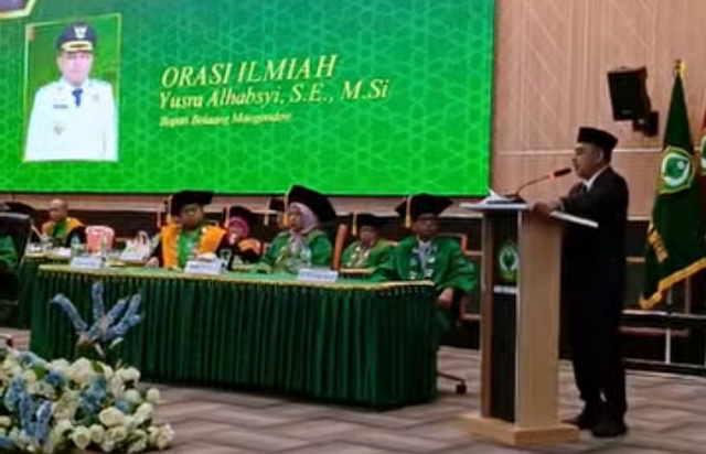 Dalam kesempatan itu, Bupati Yusra Alhabsyi juga didaulat menyampaikan orasi ilmiah di hadapan para wisudawan, sivitas akademika, serta para undangan. Dalam orasinya, Bupati menekankan pentingnya peran generasi muda terdidik sebagai motor penggerak pembangunan bangsa, terutama di daerah-daerah.