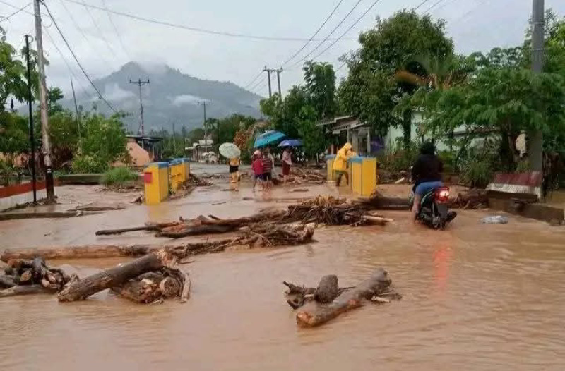Dari pantauan media, selain merendam rumah, arus banjir juga membawa material kayu dari bagian hulu. Sejumlah potongan kayu tampak berserakan di halaman rumah warga.