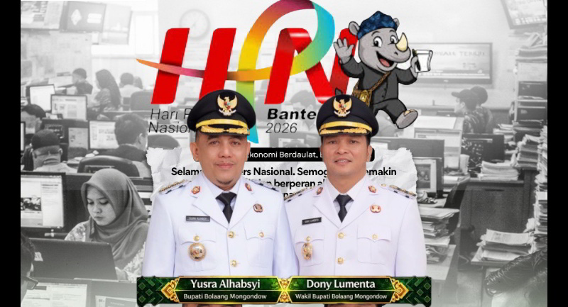 TOTABUAN.CO BOLMONG — Pemkab Bolaang Mongondow (Bolmong) menyampaikan ucapan Selamat Hari Pers Nasional (HPN) Tahun 2026 yang jatuh pada 9 Februari. Ucapan tersebut disampaikan Bupati Bolmong Yusra Alhabsyi, bersama Wakil Bupati Dony Lumenta.