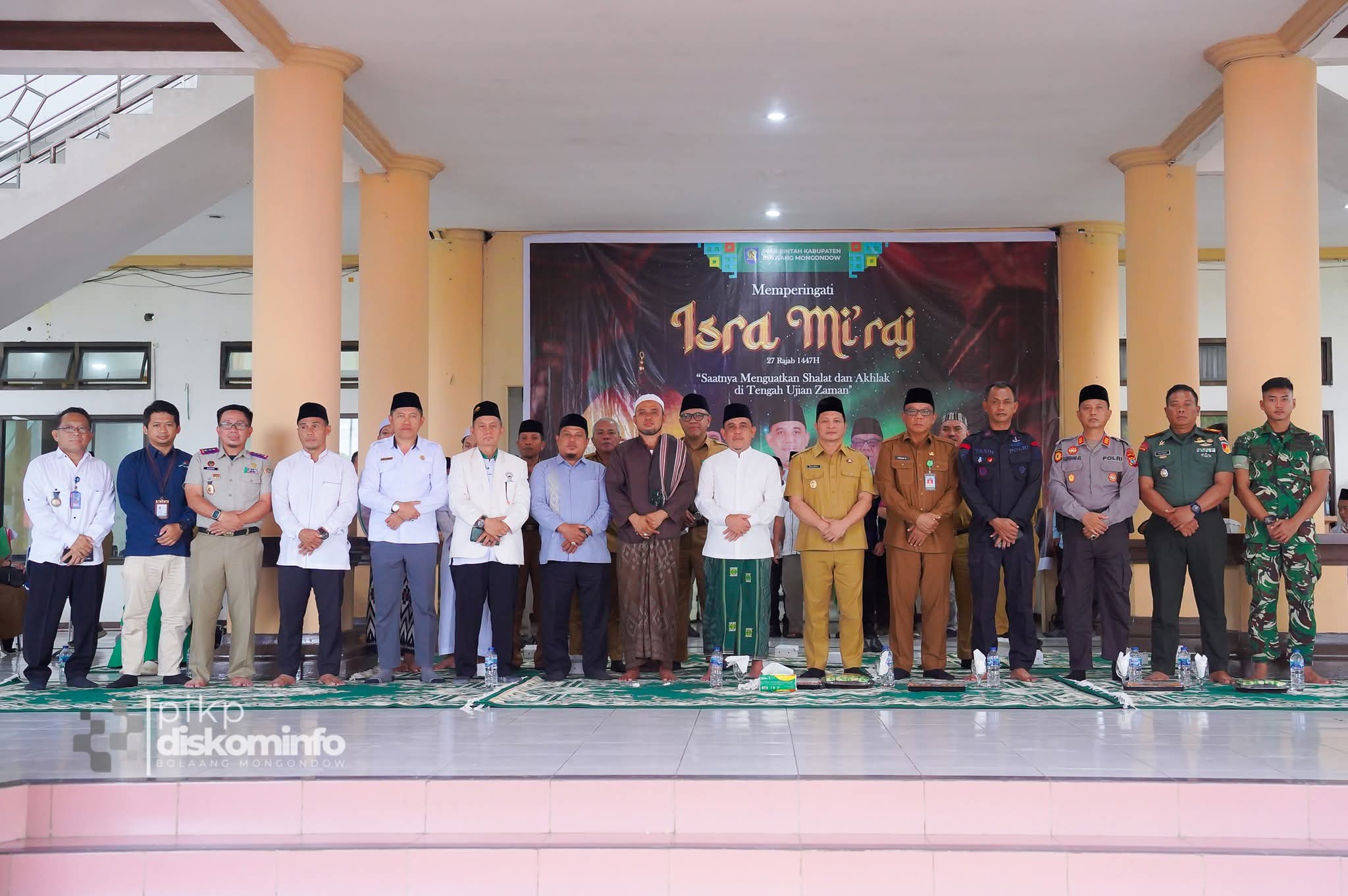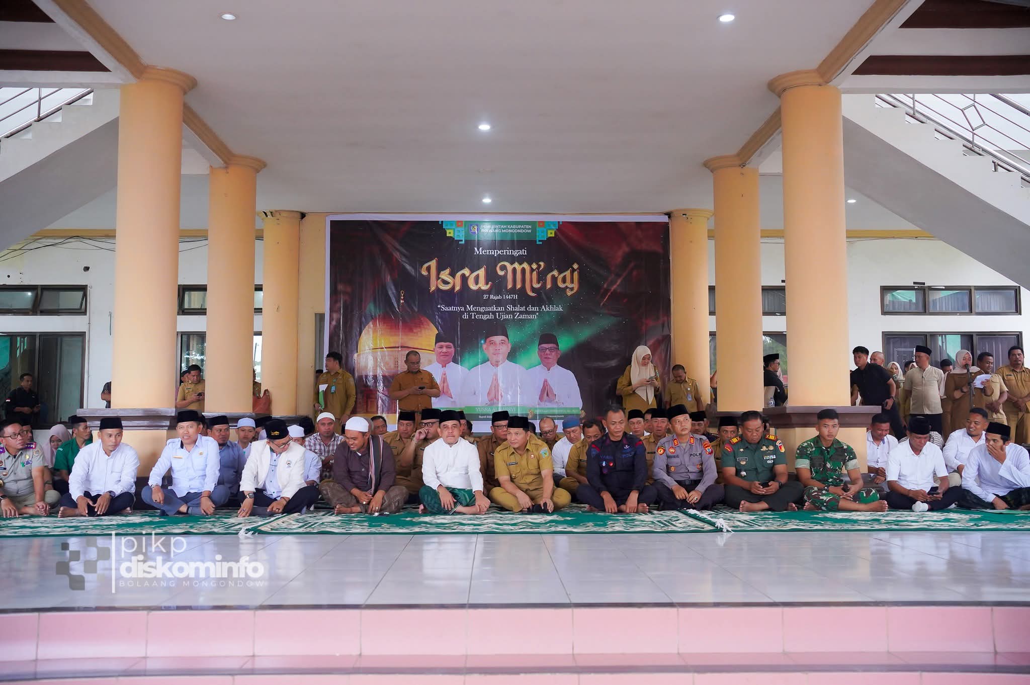 TOTABUAN.CO BOLMONG — Pemkab Bolaang Mongondow (Bolmong) memperingati Isra Mi’raj Nabi Muhammad SAW 1447 Hijriah dalam suasana penuh kesederhanaan dan religius. Kegiatan yang berlangsung khidmat ini, digelar di lantai satu Kantor Bupati Bolmong, Kecamatan Lolak, Senin (19/1/2026).