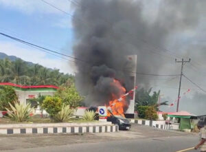 Mobil Hitam Terbakar di Depan SPBU Komangaan